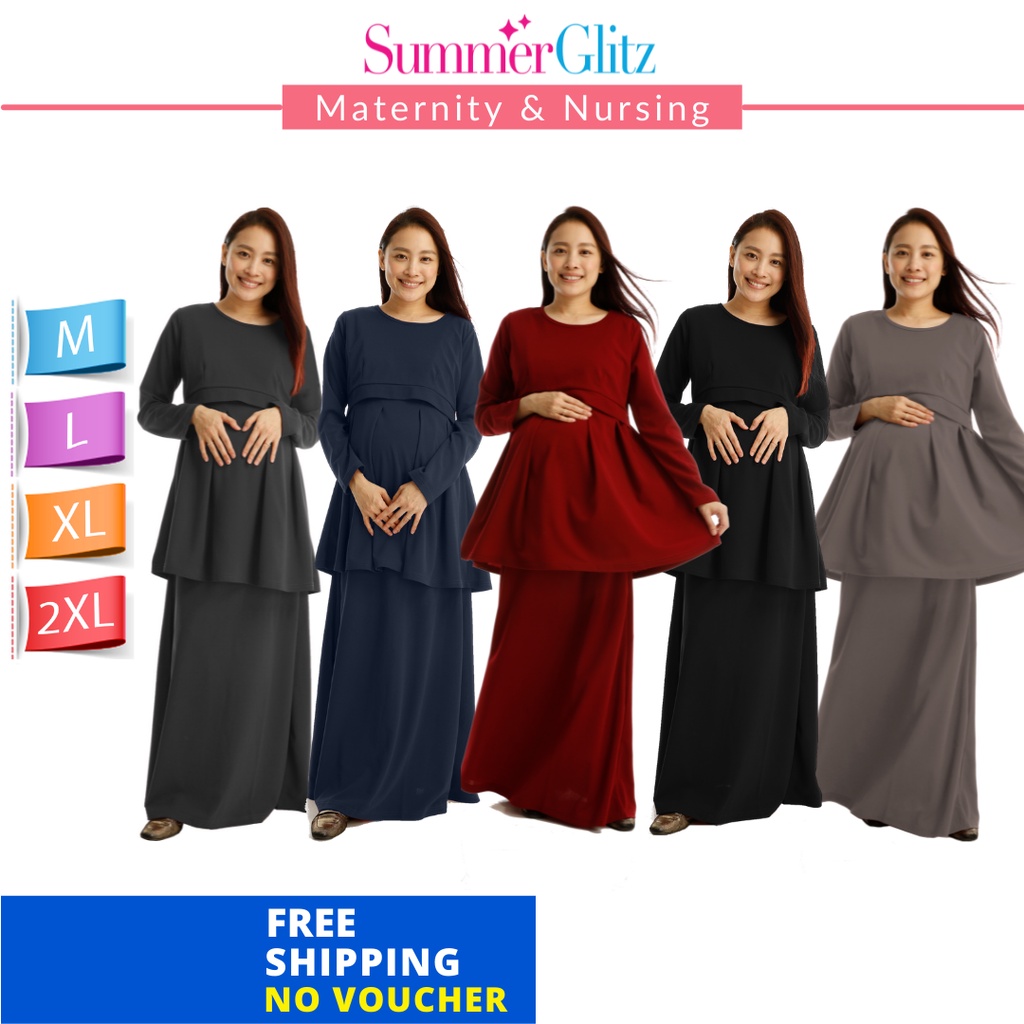 Furby Moms Amanda Maternity Nursing Kurung Baju Mengandung Muslimah Plain Shopee Malaysia